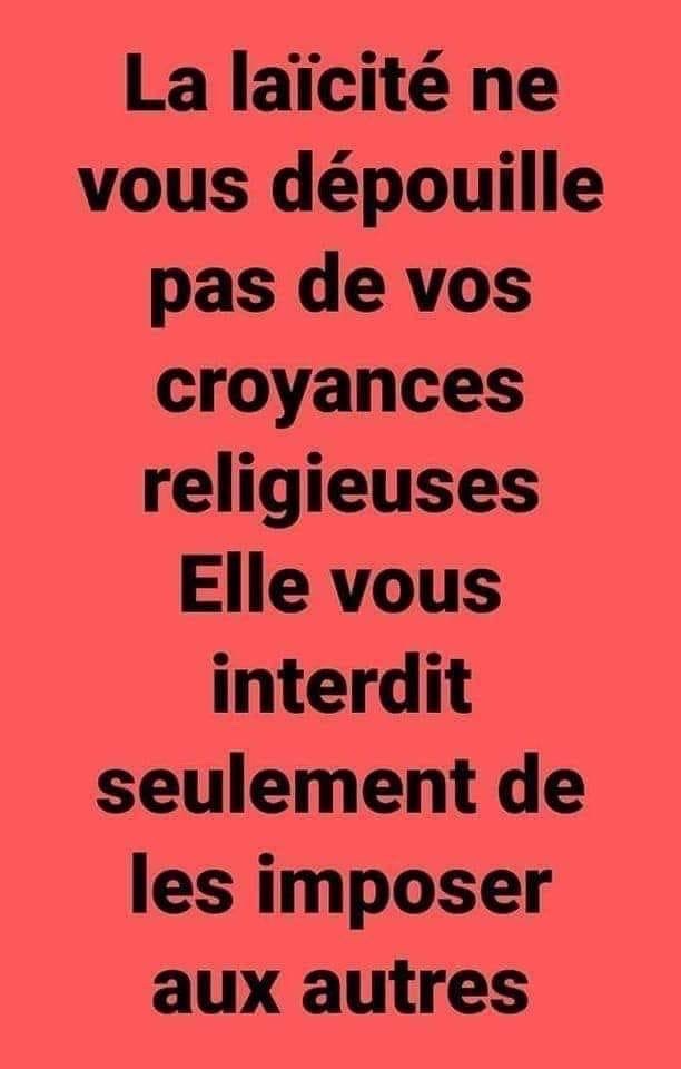Votre CITÉ, c’est le Québec et le Canada. Les règles principales de votre religion doivent respecter la charte des droits et libertés (respect de la femme, de la liberté d’expression…).