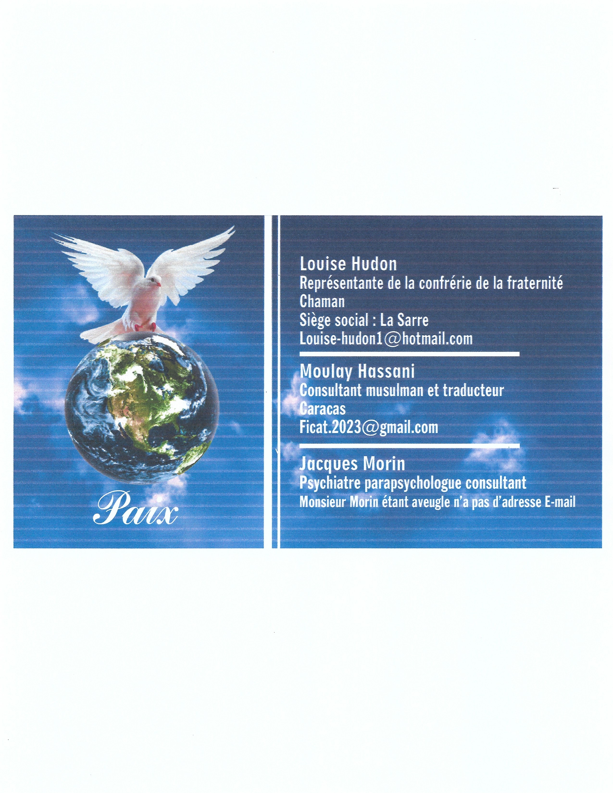 Merci de votre attention et je vous souhaite sérénité et paix.