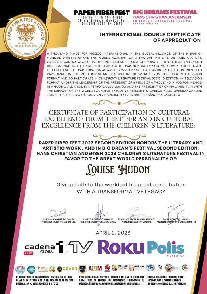 Ambassadrice culturelle internationale pour Inner Child Press (États-Unis, représentante de l’Est du Canada).